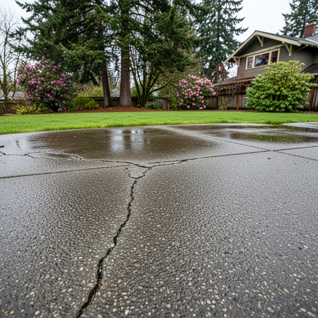 Small cracks allow water infiltration that accelerates deterioration. What starts as a minor surface crack becomes a major structural issue after a single wet Salem winter. Water penetrates the crack, erodes soil beneath, freezes and expands during cold snaps, and creates progressively larger voids.
